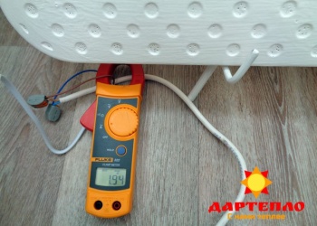 обогревателя "Теплодар" (ТеплаДар). Потребляемая мощность указанная в паспорте 400 Вт. Для измерения данной характеристики воспользуемся токовыми клещами FLUKE 322.