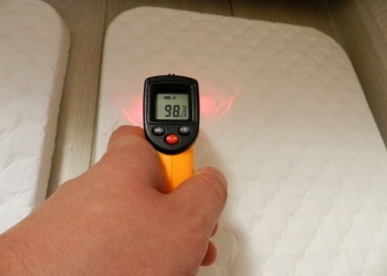 Температура нагрева настенных кварцевых обогревателей для дома "Теплодар" (ТеплаДар) заявленная производителем 95 градусов Цельсия. Для проверки заявленных данных случайным образом были выбраны два обогревателя. Измерения проводились бесконтактным инфракрасный термометр Benetech GM320.